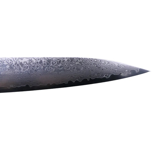 Le Gyuto est souvent considéré comme le « couteau de chef japonais ». Conçu pour un usage général, au même titre que le Santoku, il est idéal pour la découpe de viandes, de poissons et de légumes. Comparé au Santoku, le Gyuto possède une lame plus longue, ce qui le rend particulièrement adapté aux tâches nécessitant une plus grande portée.